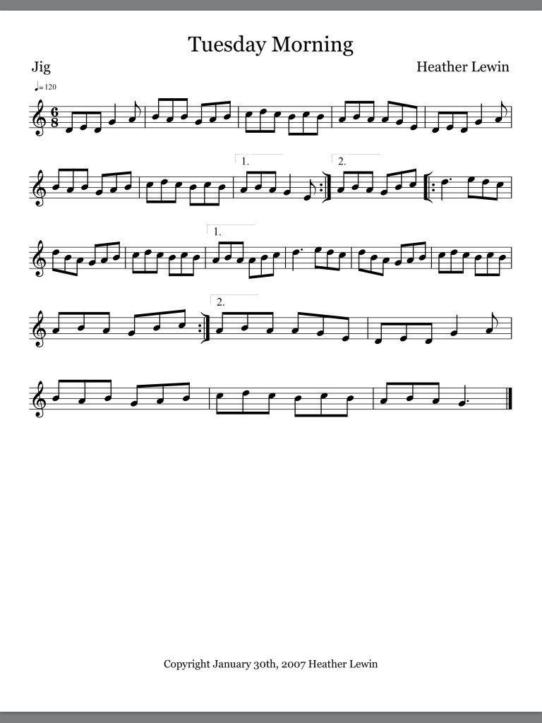 Jig that I wrote on a chilly Tuesday Morning in January 2007. Originally written in G Major but transposed down to C Major when I recorded it with Athas on the CD ‘Athas’ released later that year.